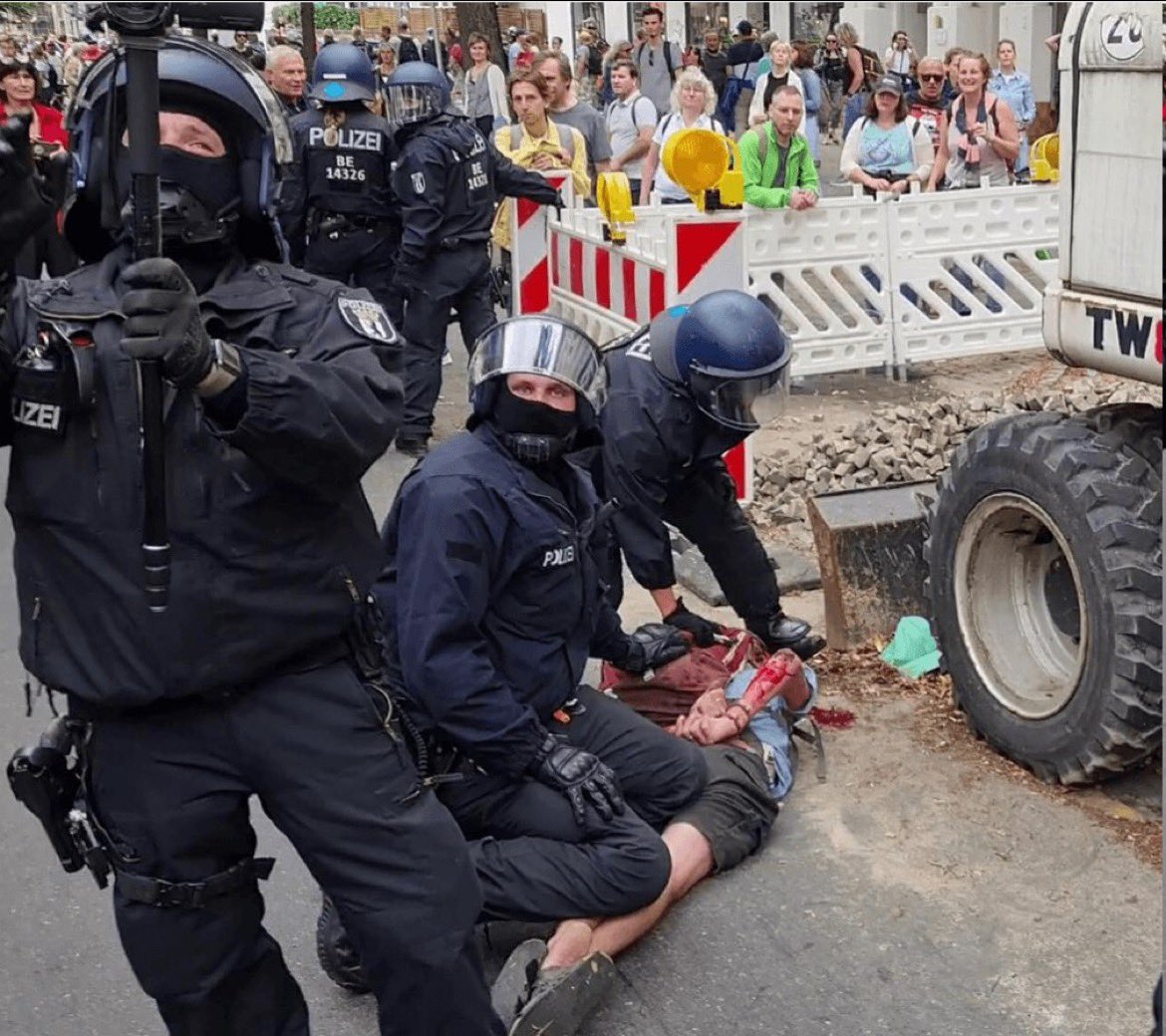Die deutsche Version von #icantbreathe. Stünde nicht „Polizei“ auf der Uniform, ich würde die Schergen von Lukaschenko für diese Brutalität vermuten.